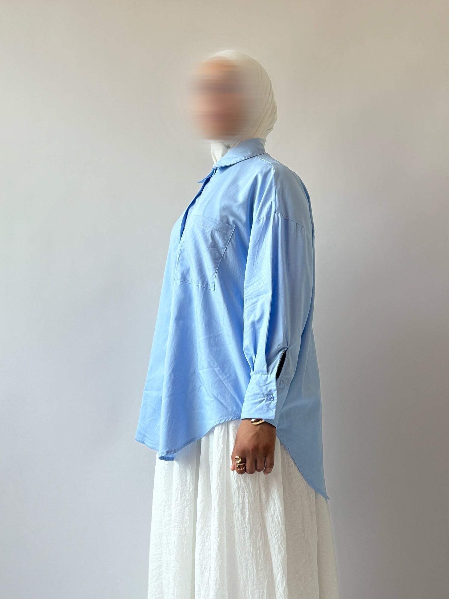 Chemise longue coupe oversize, coton léger, style minimal. La chemise parfaite pour un look décontracté et sans effort.