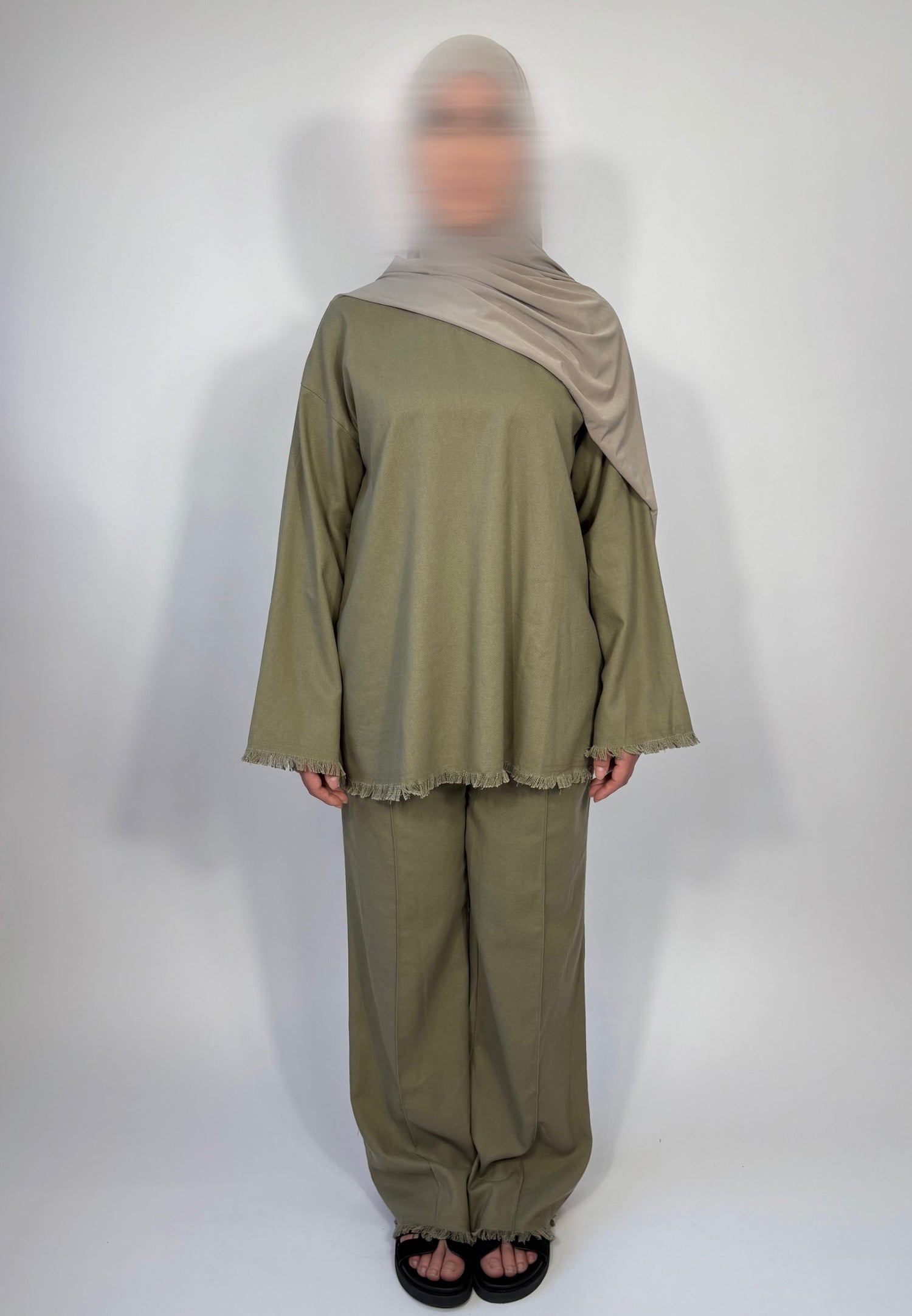 Un ensemble confortable au style affirmé, parfait pour une allure décontractée mais sophistiquée.