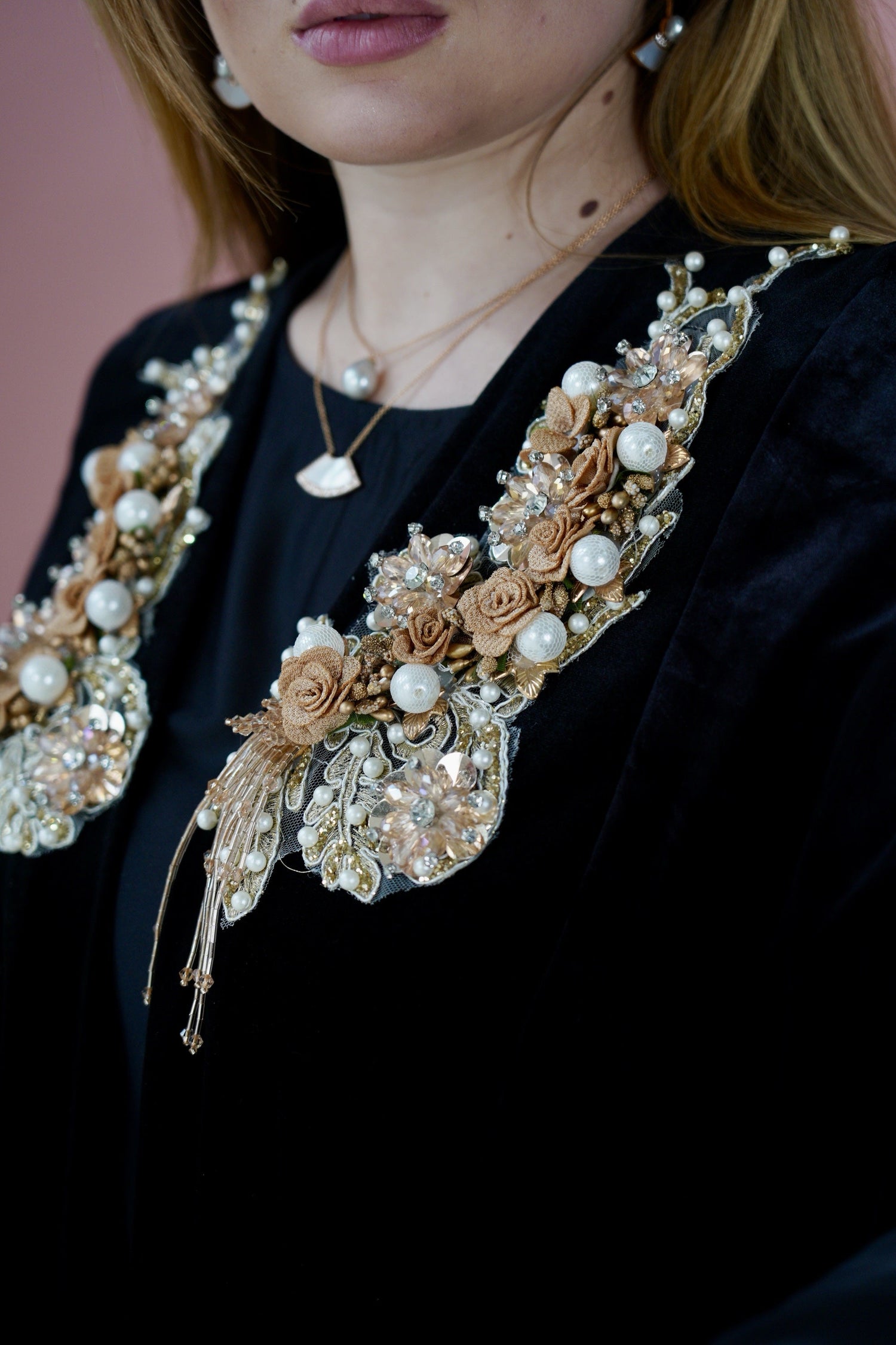 Ses fentes pour les mains, décorées de perles scintillantes, offrent confort et élégance, pour sublimer vos tenues en toute liberté. Parfaite pour les occasions spéciales ou pour rehausser votre quotidien, cette pièce unique est un incontournable du raffinement.